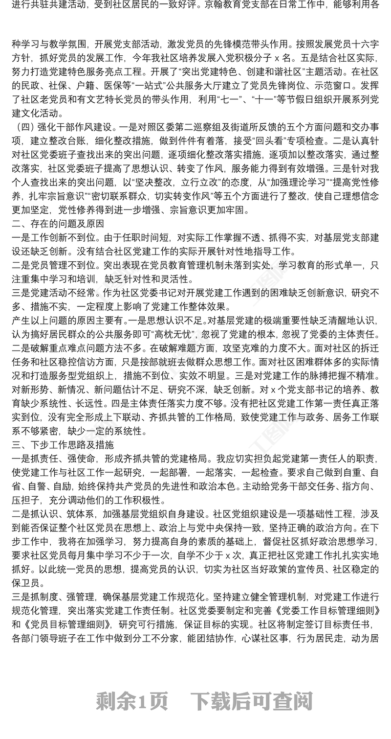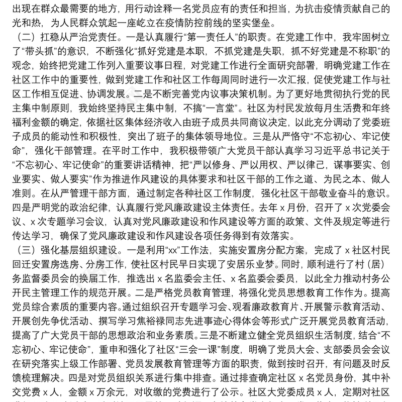 社區(qū)書記抓基層黨建工作述職報(bào)告