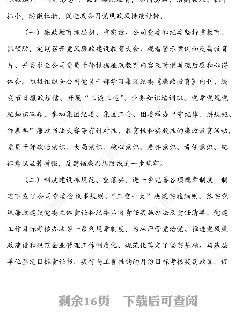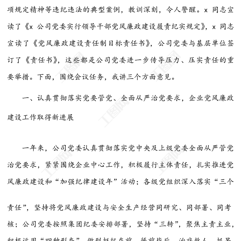 首頁 > WORD文檔 > 黨風(fēng)廉政 > 整風(fēng)肅紀(jì)恪盡職守 為企業(yè)持續(xù)健康發(fā)展?fàn)I造風(fēng)清氣正環(huán)境——在x公司2022年黨風(fēng)廉政建設(shè)工作會(huì)議上的講話范文.DOCX 【圖片、文字、動(dòng)畫均可編輯】