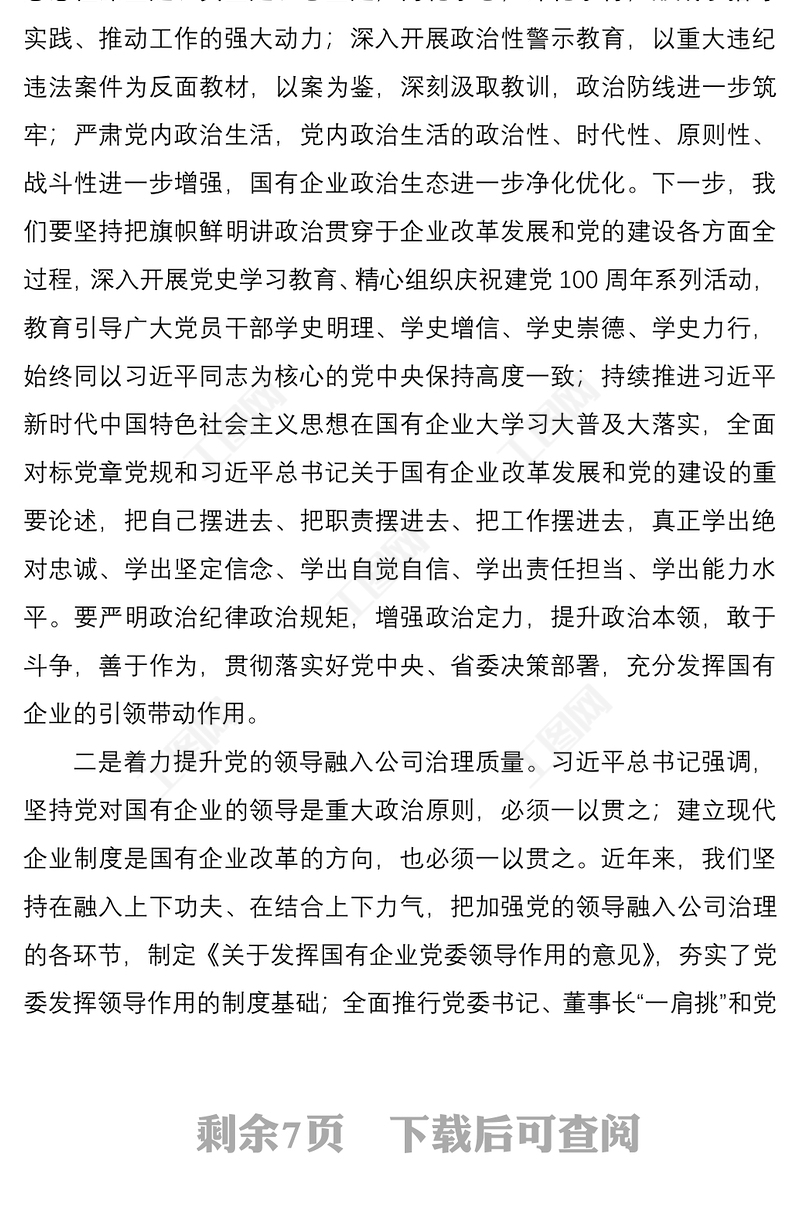 工圖網(wǎng)提供國(guó)有企業(yè)2021年黨建工作會(huì)議領(lǐng)導(dǎo)講話范文供會(huì)員免費(fèi)下載。更多精彩黨課PPT素材,盡在工圖網(wǎng)。