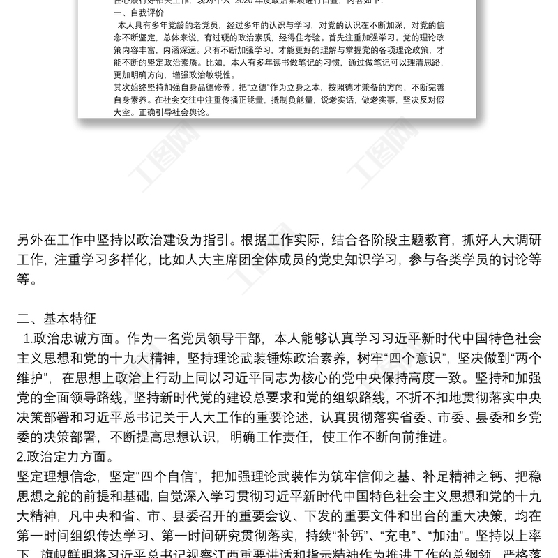 工圖網(wǎng)提供關(guān)于黨員干部政治素質(zhì)考察自評(píng)報(bào)告新【十篇】供會(huì)員免費(fèi)下載。更多精彩黨課PPT素材,盡在工圖網(wǎng)。