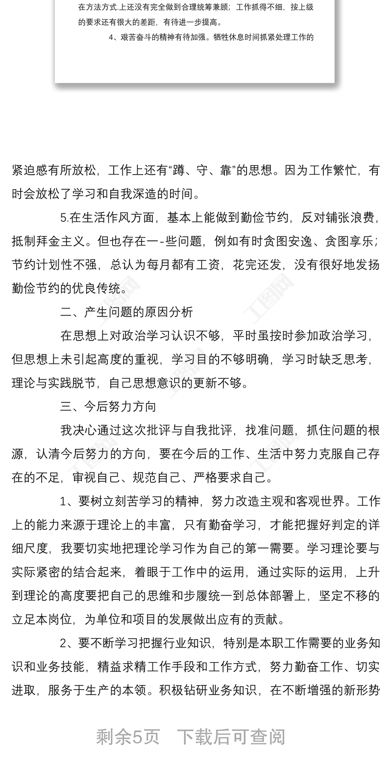 工圖網(wǎng)提供作風(fēng)紀(jì)律專題民主生活會(huì)個(gè)人剖析檢查材料及稅務(wù)系統(tǒng)班子成員紀(jì)律作風(fēng)專項(xiàng)整治對(duì)照檢查材料供會(huì)員免費(fèi)下載。更多精彩黨課PPT素材,盡在工圖網(wǎng)。