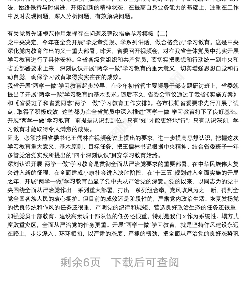 有關(guān)黨員先鋒模范作用發(fā)揮存在問(wèn)題及整改措施參考模板