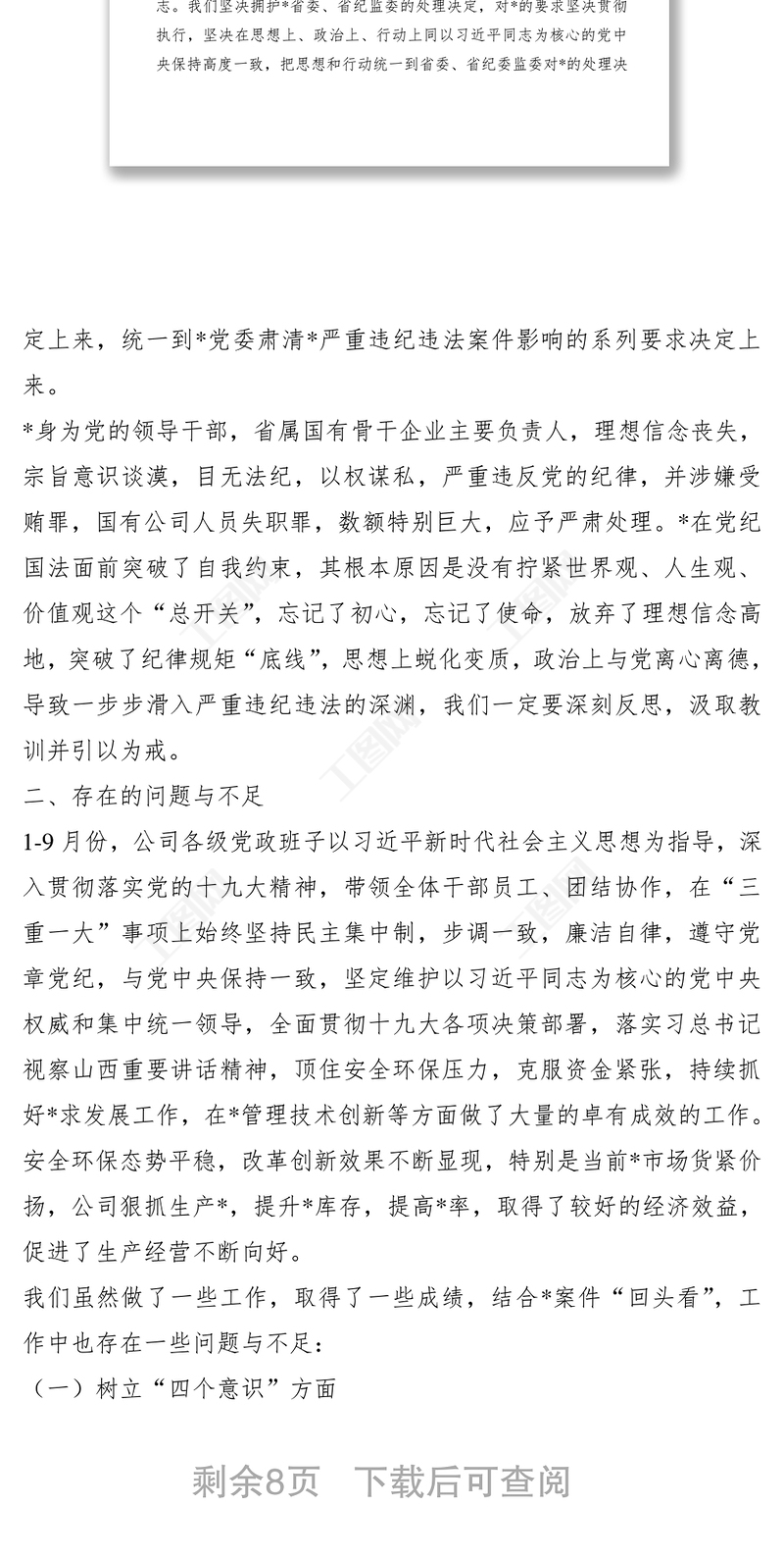 工圖網(wǎng)提供2021【民主生活會(huì)】深刻汲取-案件教訓(xùn),強(qiáng)化責(zé)任,筑牢防線專題民主生活會(huì)領(lǐng)導(dǎo)班子對(duì)照檢查材料供會(huì)員免費(fèi)下載。更多精彩黨課PPT素材,盡在工圖網(wǎng)。