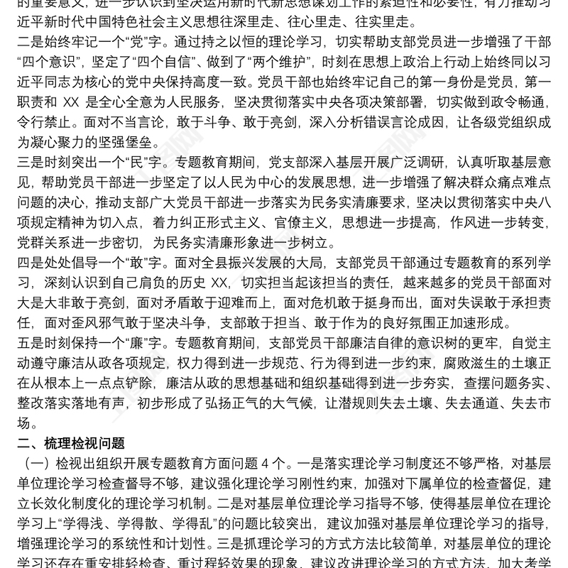 機關黨支部班子專題教育組織生活會4個方面檢視剖析材料包含
