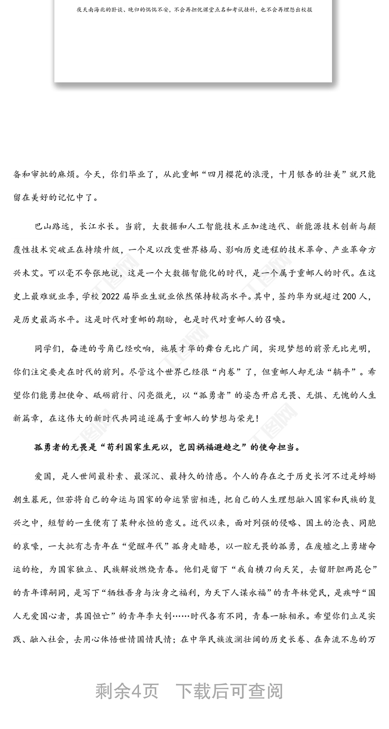 > 公文范文 > 以“孤勇者”的姿態(tài) 開啟無畏無懼無愧的人生新篇章——校長在2022屆畢業(yè)生畢業(yè)典禮暨授位儀式上的致.DOCX 【圖片、文字、動畫均可編輯】