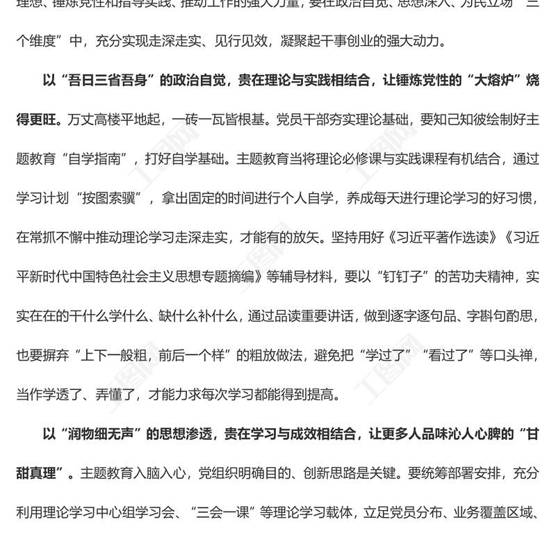 工圖網(wǎng)提供主題教育貴在“結(jié)合”(主題教育心得體會)供會員免費下載。更多精彩黨課PPT素材,盡在工圖網(wǎng)。