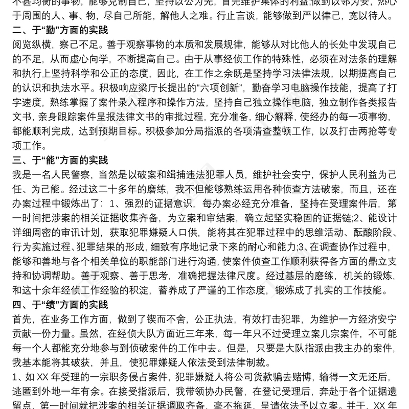 20xx年公安局經(jīng)偵大隊長述職報告