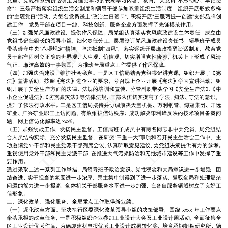 工圖網(wǎng)提供區(qū)工業(yè)和信息化局年度領(lǐng)導(dǎo)班子述職述廉述學(xué)述法報(bào)告供會(huì)員免費(fèi)下載。更多精彩黨課PPT素材,盡在工圖網(wǎng)。