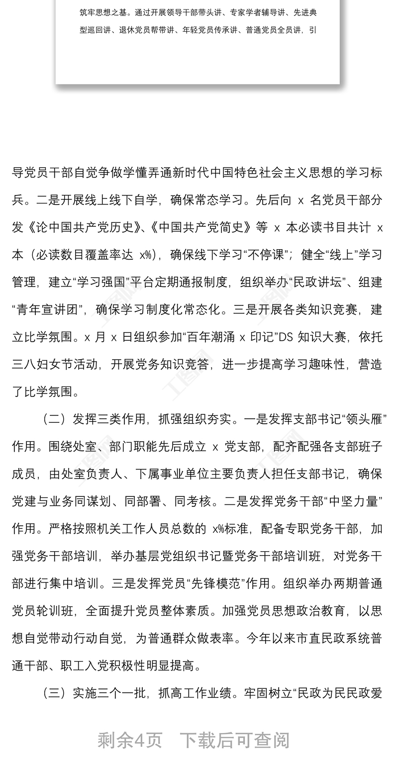 市民政局黨建工作匯報范文工作總結(jié)報告 Array