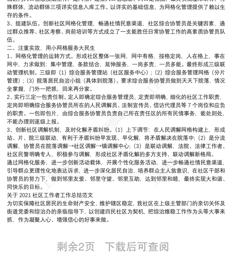 關(guān)于2021社區(qū)工作者工作總結(jié)范文精選 Array