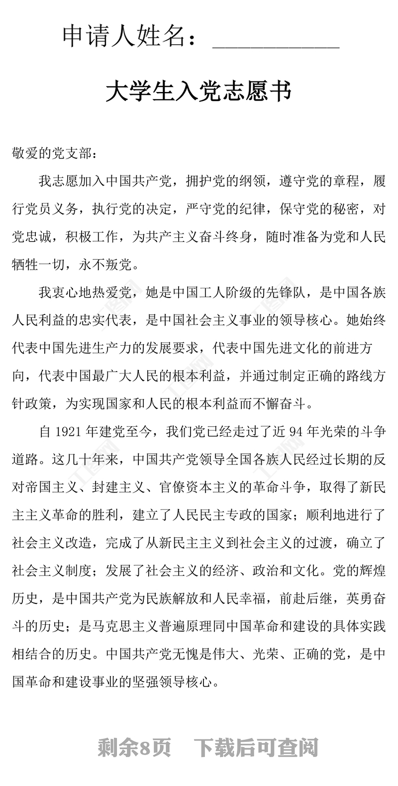 工圖網(wǎng)提供2021年大學(xué)生入黨志愿書(shū)填寫范文供會(huì)員免費(fèi)下載。更多精彩黨課PPT素材,盡在工圖網(wǎng)。