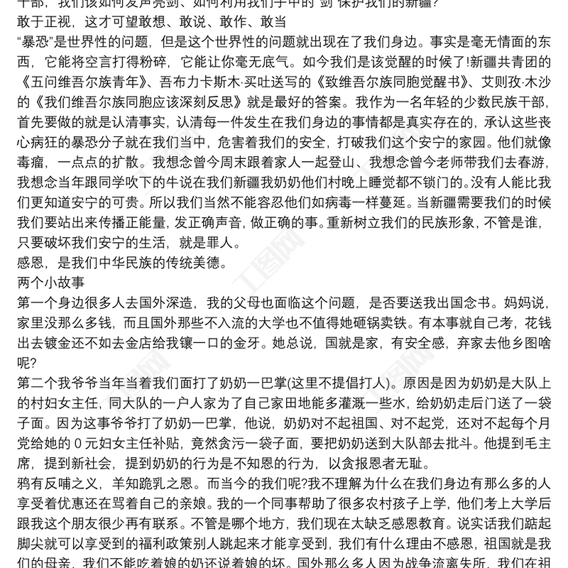 工圖網(wǎng)提供【關(guān)于新疆歷史的發(fā)聲亮劍發(fā)言稿】新疆發(fā)聲亮劍發(fā)言稿14篇供會(huì)員免費(fèi)下載。更多精彩黨課PPT素材,盡在工圖網(wǎng)。