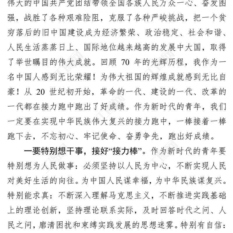 公文范文紀(jì)念建國70周年演講稿不忘初心牢記使命跑好新時代接力棒
