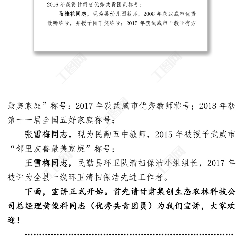 > 經(jīng)驗(yàn)事跡 > 先進(jìn)事跡報(bào)告全縣選樹百名模范人物巡回宣講xx報(bào)告會(huì)主持詞.DOCX 【圖片、文字、動(dòng)畫均可編輯】