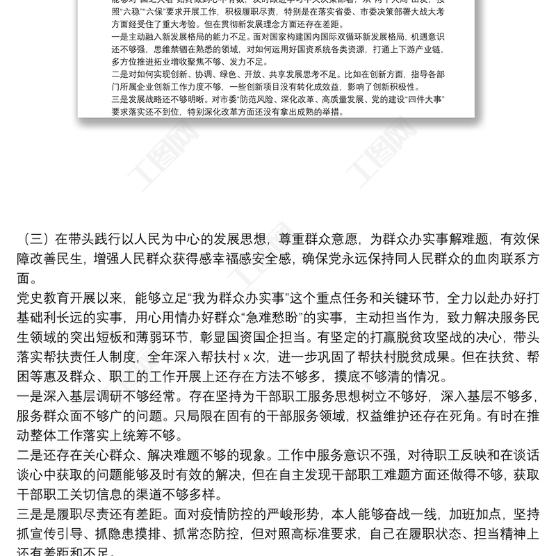 工圖網(wǎng)提供2021年國企黨委書記黨史學(xué)習(xí)教育專題民主生活會對照檢查材料供會員免費下載。更多精彩黨課PPT素材,盡在工圖網(wǎng)。