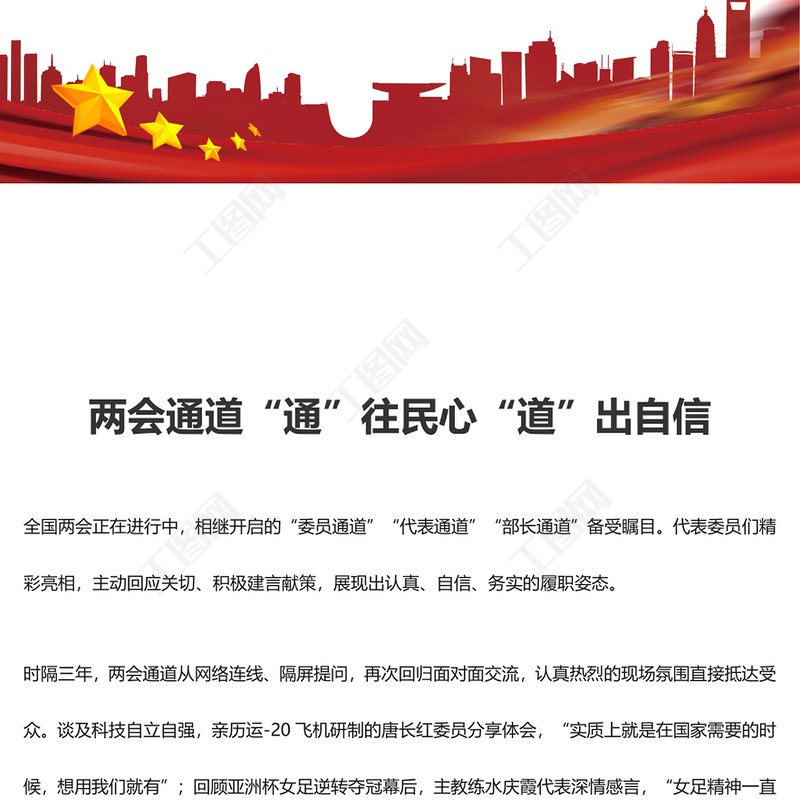 工圖網(wǎng)提供兩會通道“通”往民心“道”出自信供會員免費下載。更多精彩黨課PPT素材,盡在工圖網(wǎng)。