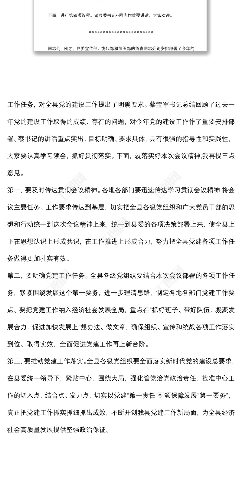 在2020年黨的建設(shè)工作會議上的講話工作會議講話包含
