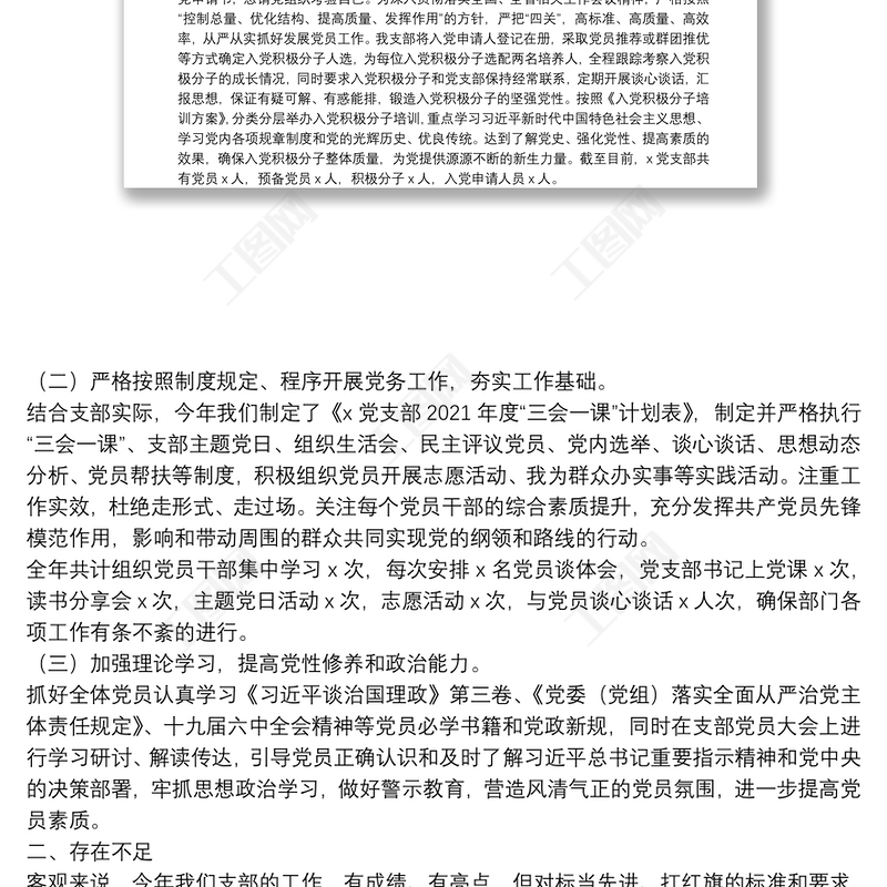 工圖網(wǎng)提供2021年度X黨支部書記抓基層黨建工作述職報告供會員免費(fèi)下載。更多精彩黨課PPT素材,盡在工圖網(wǎng)。
