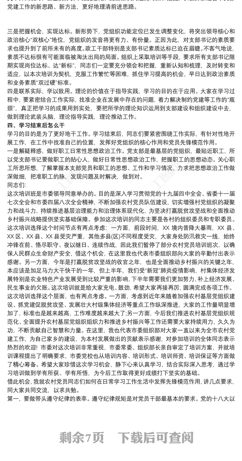 工圖網(wǎng)提供2021在20xx年農(nóng)村黨員培訓(xùn)班上講話供會員免費下載。更多精彩黨課PPT素材,盡在工圖網(wǎng)。