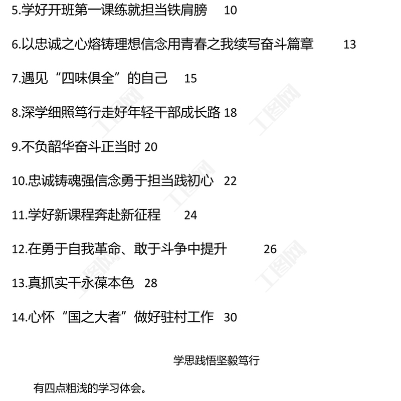 工圖網(wǎng)提供年輕干部在青年干部座談會上的發(fā)言材料匯編(14篇)供會員免費下載。更多精彩黨課PPT素材,盡在工圖網(wǎng)。