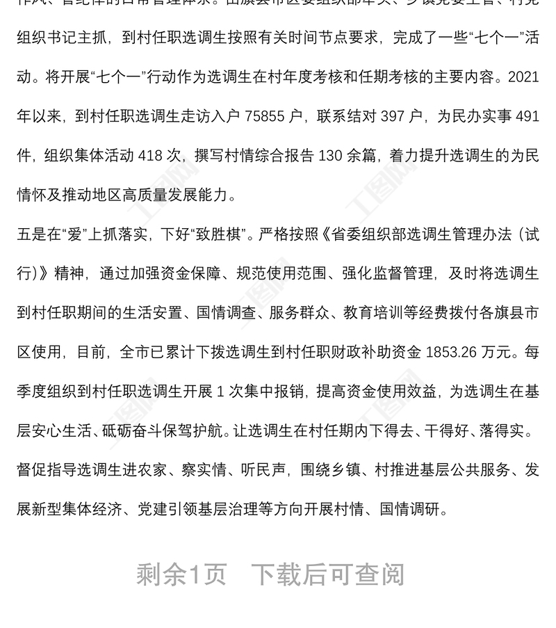 工圖網(wǎng)提供選調(diào)生到村任職工作情況匯報供會員免費下載。更多精彩黨課PPT素材,盡在工圖網(wǎng)。