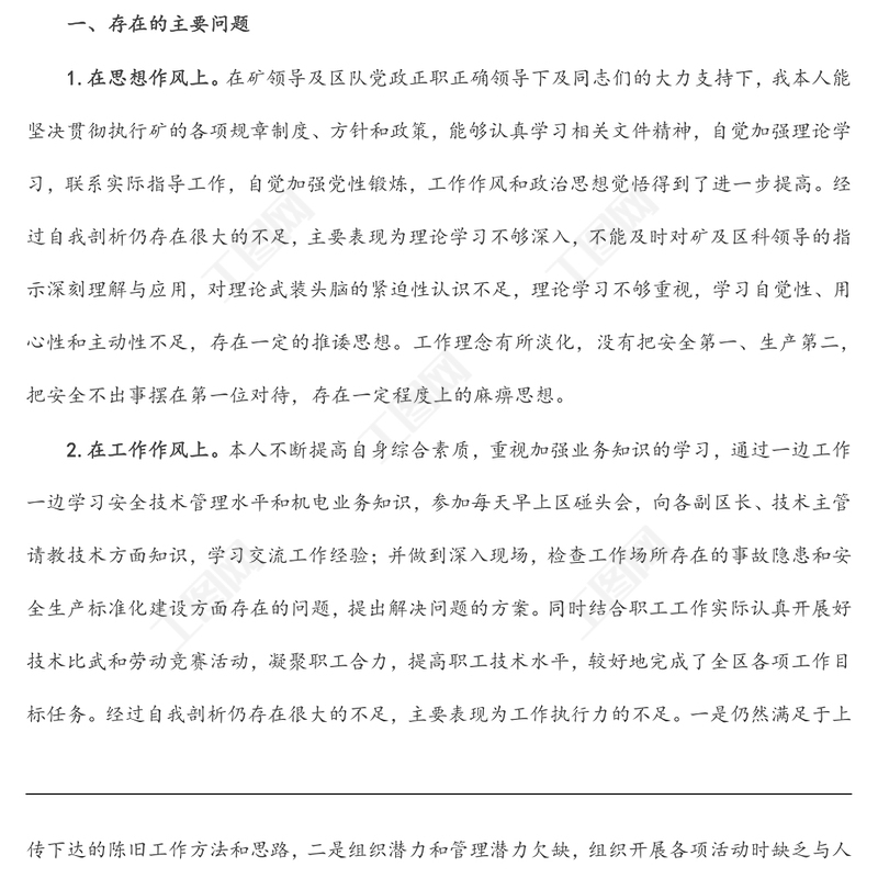 工圖網(wǎng)提供國企職工“轉(zhuǎn)作風(fēng)提能力抓落實(shí)”專題教育活動(dòng)個(gè)人對照檢查材料供會(huì)員免費(fèi)下載。更多精彩黨課PPT素材,盡在工圖網(wǎng)。