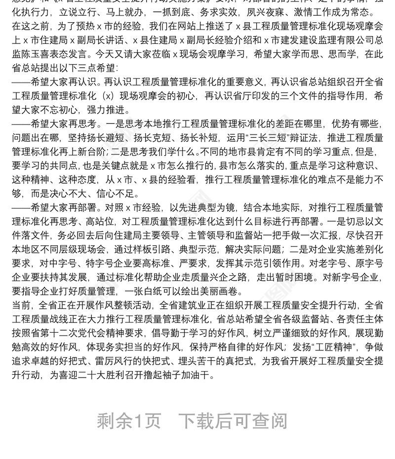 工圖網(wǎng)提供在工程質(zhì)量管理標(biāo)準(zhǔn)化現(xiàn)場觀摩會(huì)上的講話供會(huì)員免費(fèi)下載。更多精彩黨課PPT素材,盡在工圖網(wǎng)。