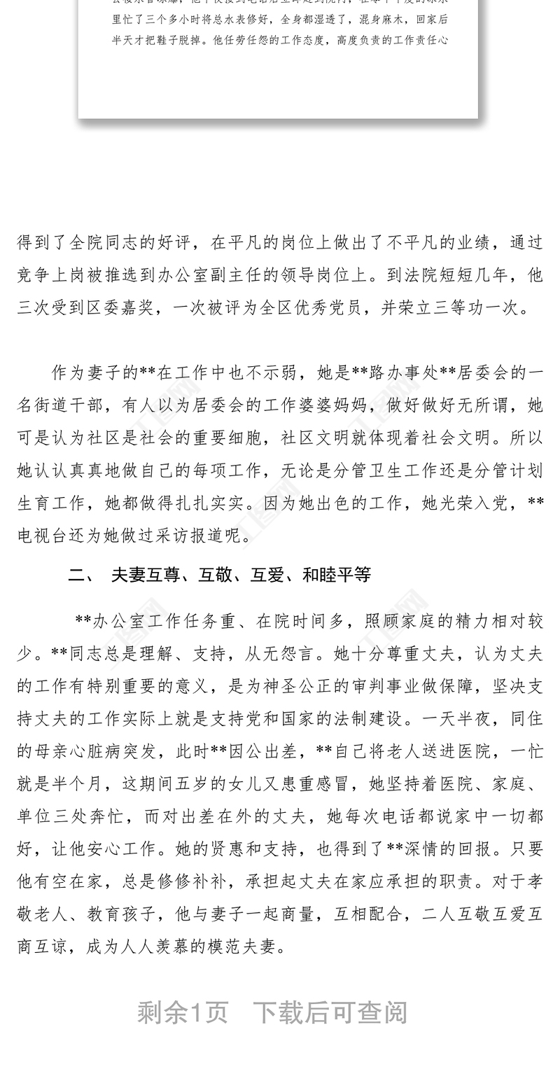 工圖網(wǎng)提供2021【先進(jìn)事跡】法院干警五好家庭事跡材料供會(huì)員免費(fèi)下載。更多精彩黨課PPT素材,盡在工圖網(wǎng)。