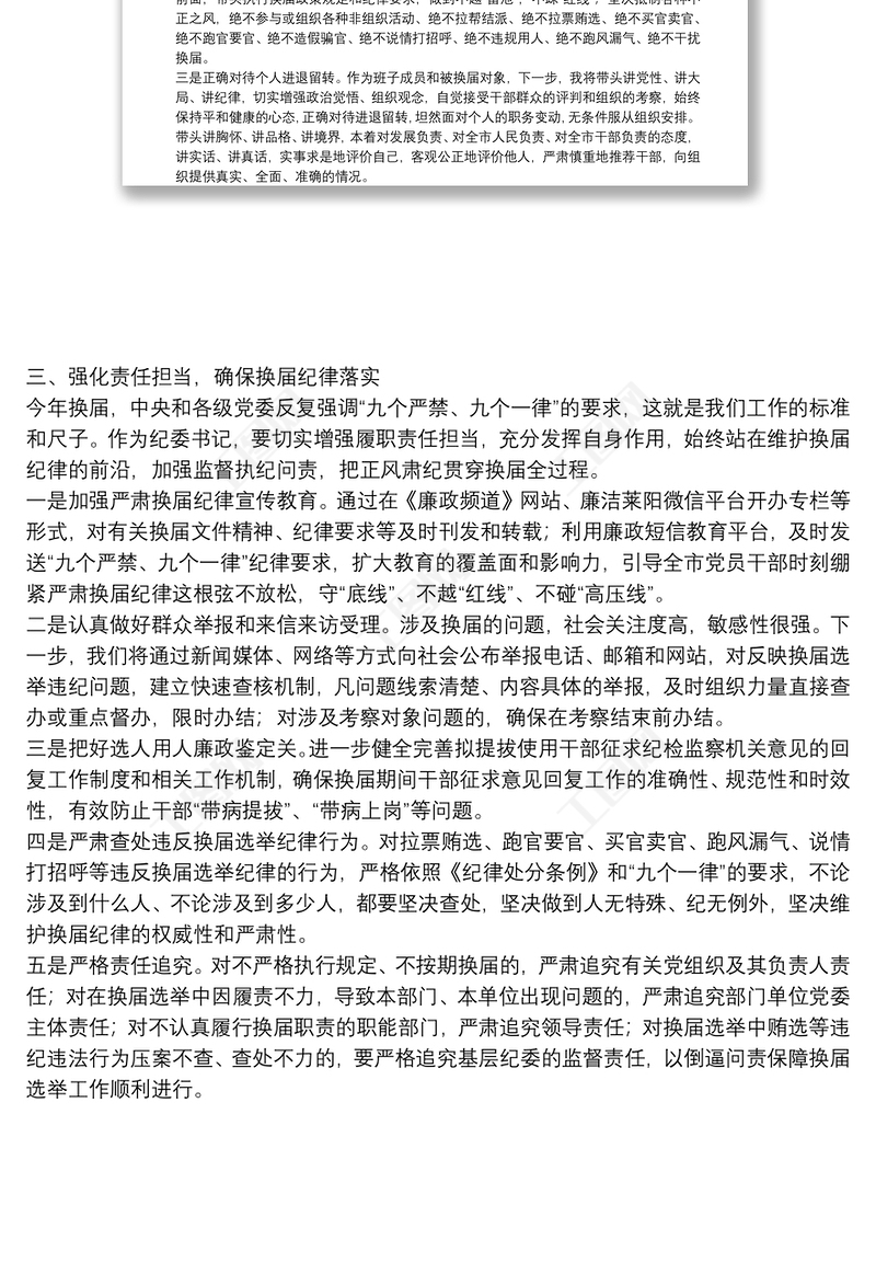 X縣紀委書記嚴肅換屆紀律研討發(fā)言