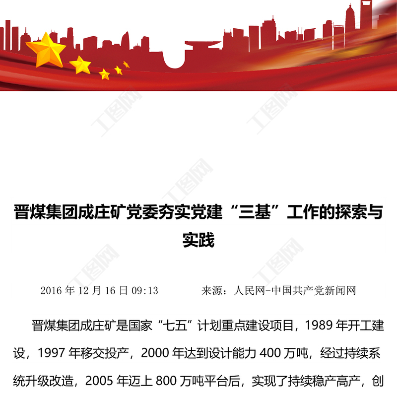 工圖網(wǎng)提供晉煤集團(tuán)成莊礦黨委夯實(shí)黨建“三基”工作的探索與實(shí)踐供會員免費(fèi)下載。更多精彩黨課PPT素材,盡在工圖網(wǎng)。