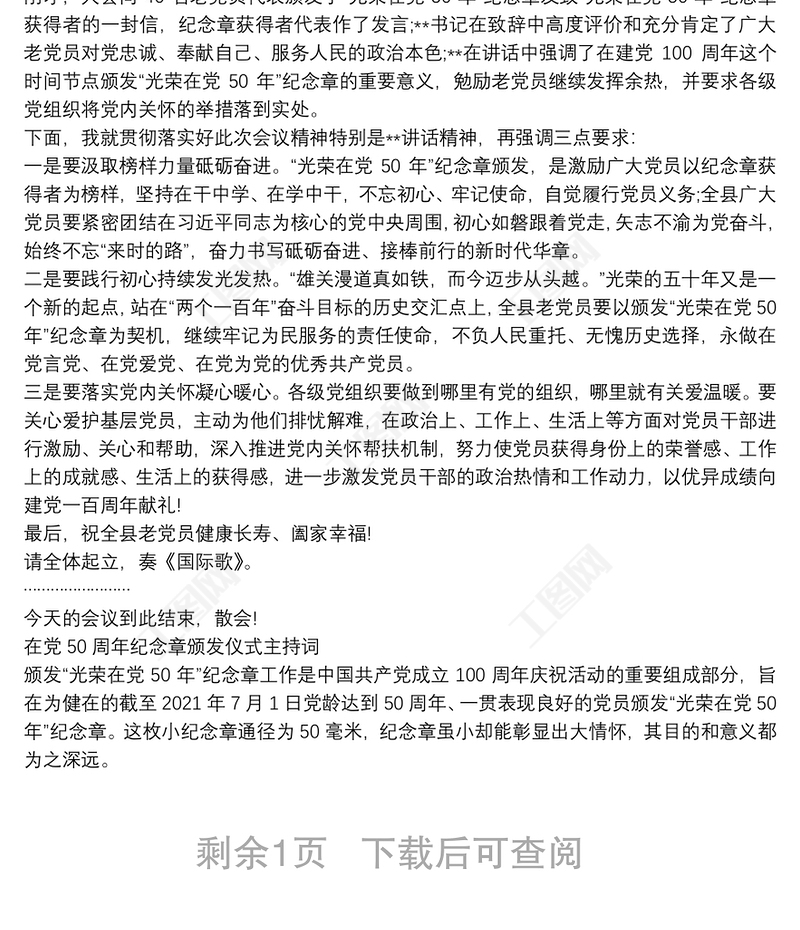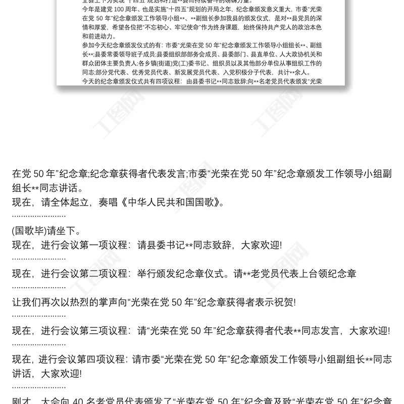 工圖網(wǎng)提供在黨50周年紀(jì)念章頒發(fā)儀式主持詞供會(huì)員免費(fèi)下載。更多精彩黨課PPT素材,盡在工圖網(wǎng)。