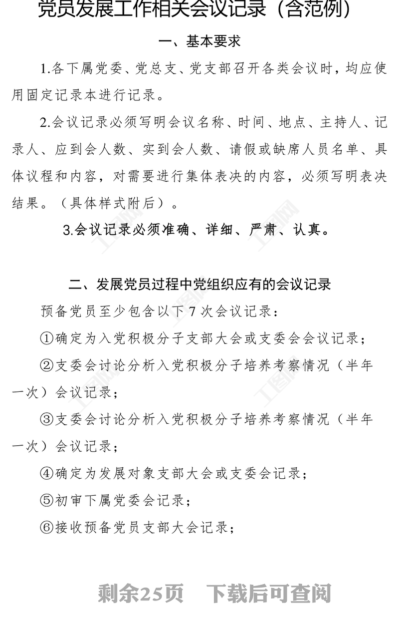 工圖網(wǎng)提供黨員發(fā)展工作相關(guān)會議記錄(含范例)供會員免費下載。更多精彩黨課PPT素材,盡在工圖網(wǎng)。