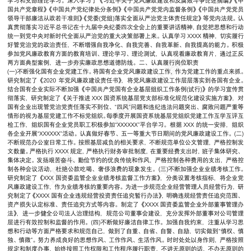 國(guó)企領(lǐng)導(dǎo)上半年履行黨建工作一崗雙責(zé)情況報(bào)告范文集團(tuán)公司國(guó)有企業(yè)個(gè)人工作匯報(bào)總結(jié)包含