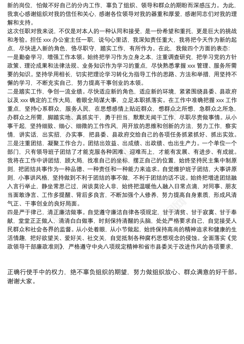 在新提拔任用干部集體談話會議上的表態(tài)發(fā)言