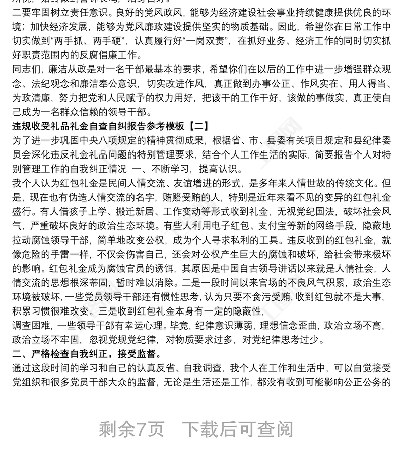 違規(guī)收受禮品禮金自查自糾報告參考模板 Array