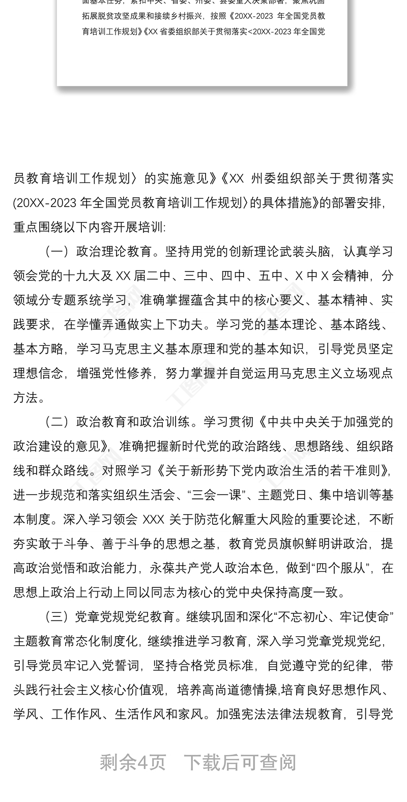 2022年黨員教育培訓(xùn)工作計(jì)劃范文工作實(shí)施方案包含