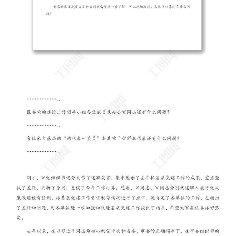 工圖網(wǎng)提供2020年度黨建工作責(zé)任制述職評(píng)議會(huì)主持詞供會(huì)員免費(fèi)下載。更多精彩黨課PPT素材,盡在工圖網(wǎng)。