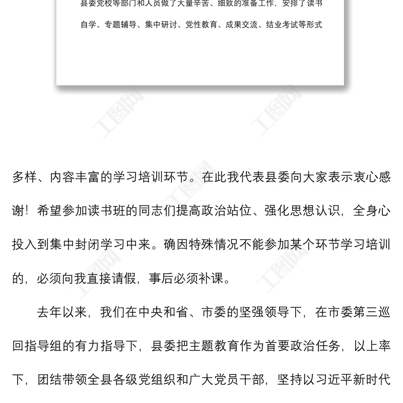 工圖網(wǎng)提供2021縣委書記主題教育成果專題讀書班動員講話供會員免費下載。更多精彩黨課PPT素材,盡在工圖網(wǎng)。