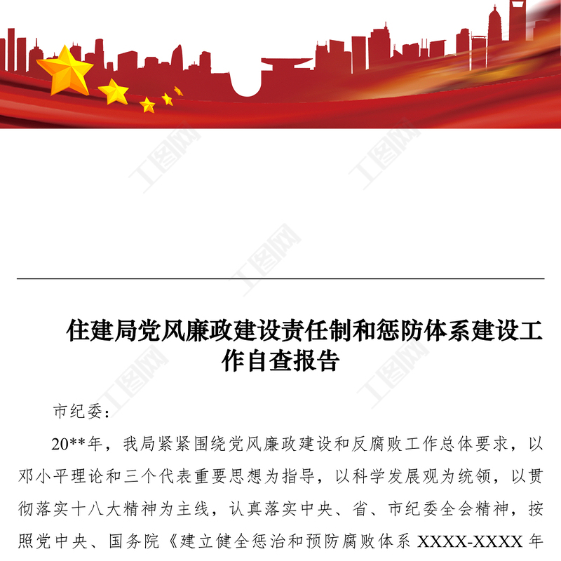 工圖網(wǎng)提供2021住建局黨風(fēng)廉政建設(shè)責(zé)任制和懲防體系建設(shè)工作自查報(bào)告供會(huì)員免費(fèi)下載。更多精彩黨課PPT素材,盡在工圖網(wǎng)。