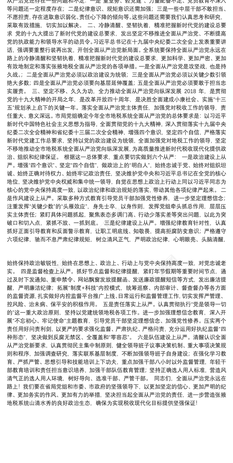 2018年全市地稅系統(tǒng)全面從嚴(yán)治黨工作會議工作報告 Array