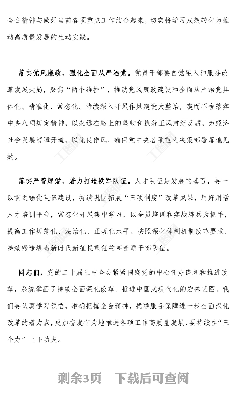 工圖網(wǎng)提供學(xué)習(xí)貫徹黨的二十屆三中全會精神研討發(fā)言稿范文供會員免費(fèi)下載。更多精彩黨課PPT素材,盡在工圖網(wǎng)。