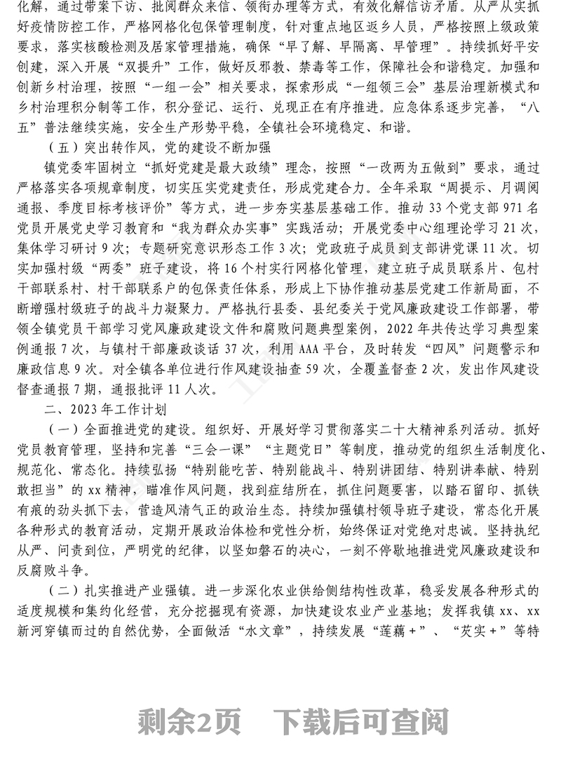 鎮(zhèn)年工作總結(jié)和2023年工作計(jì)劃