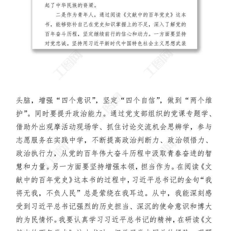 工圖網(wǎng)提供2021讀《文獻中的百年黨史》心得體會供會員免費下載。更多精彩黨課PPT素材,盡在工圖網(wǎng)。