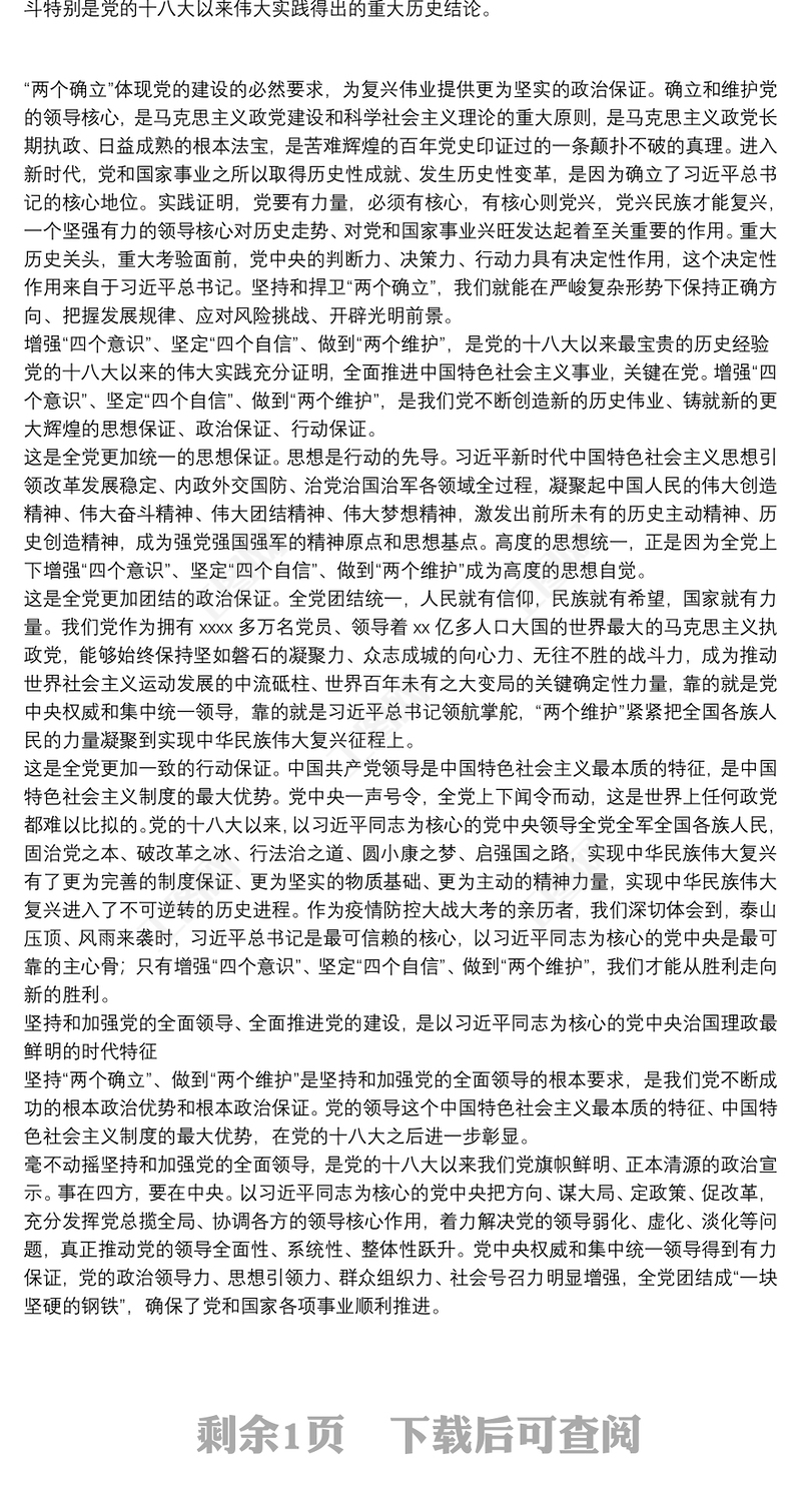 2022消防隊伍高舉旗幟聽黨指揮堅定不移捍衛(wèi)兩個確立做到兩個維護(hù)2022堅持兩個確立做到兩個維護(hù)的談心談話記錄2022捍衛(wèi)兩個確立做到兩個維護(hù)對照檢查2022兩個確立做到兩個維護(hù)大討論活動對照檢查材料2022高舉旗幟聽黨指揮堅定不移捍衛(wèi)兩個確立做到兩個維護(hù)第一專題研討材料2022兩個確立做到兩個維護(hù)個人發(fā)言稿2023醫(yī)院新時代中國特色社會主義思想集中研討發(fā)言材料2023年新時代中國特色社會主義思想專題研討發(fā)言材料2023教育系統(tǒng)新時代中國特色社會主義思想研討發(fā)言材料2023新時代中國特色社會主義思想專題研討會上的專題發(fā)言2023新時代中國特色社會主義思想專題二研討發(fā)言材料2023新時代中國特色社會主義思想研討發(fā)言點(diǎn)評2023新時代中國特色社會主義思想嚴(yán)以律己研討發(fā)言稿2023林業(yè)新時代中國特色社會主義思想第一專題研討發(fā)言稿2023新時代中國特色社會主義思想依法治企專題研討發(fā)言