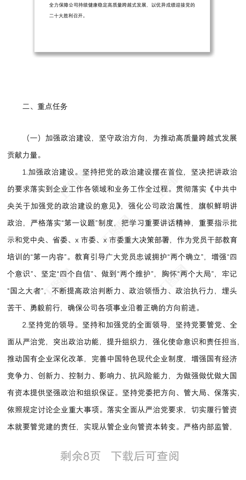 黨建工作方案2022年黨建工作重點任務工作方案范文國有企業(yè)集團公司黨建工作重點任務清單計劃 Array