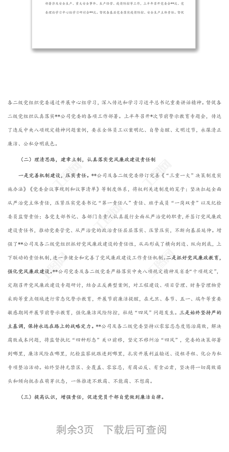 公司2022年上半年黨風(fēng)廉政工作總結(jié)及下半年工作打算