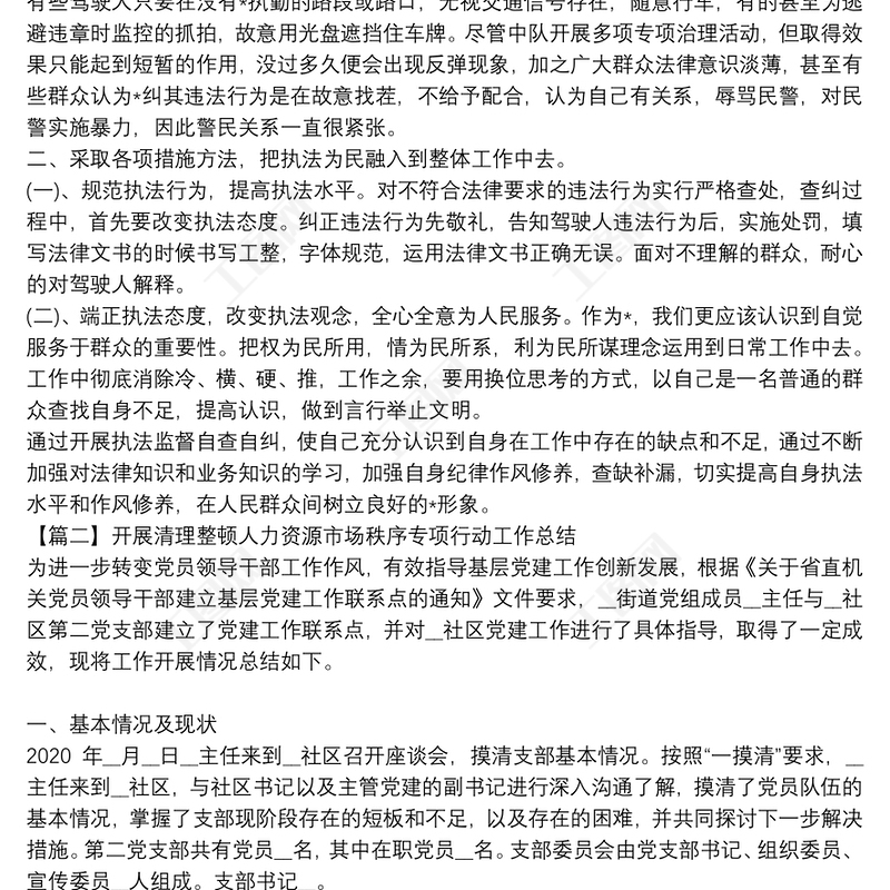 開展清理整頓人力資源市場秩序?qū)m椥袆庸ぷ骺偨Y(jié)6篇