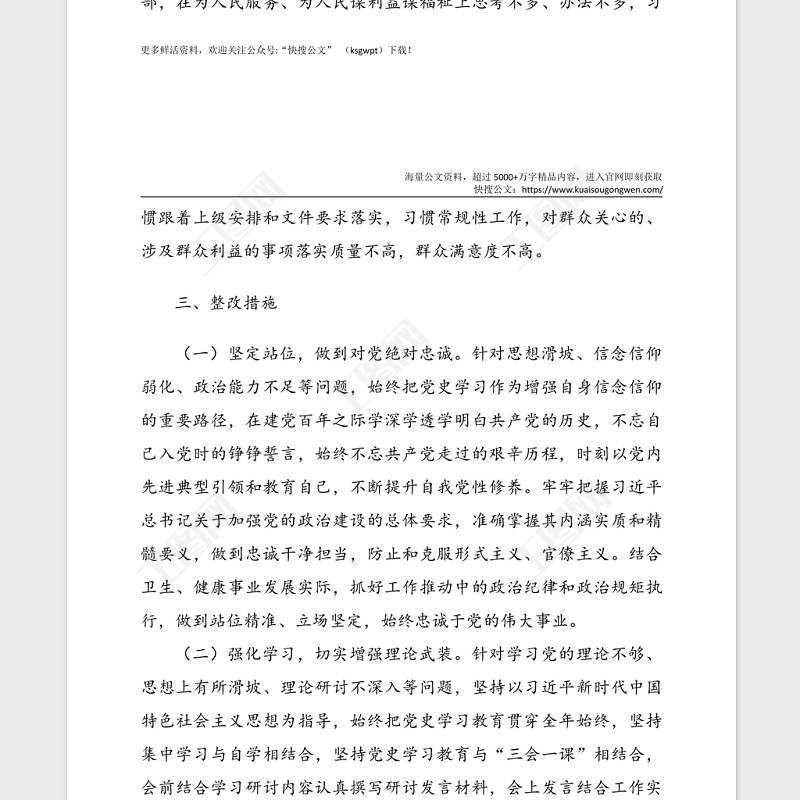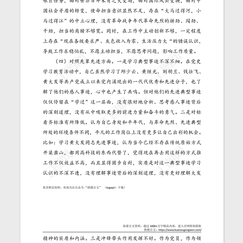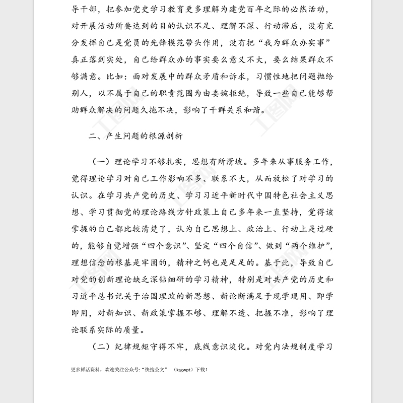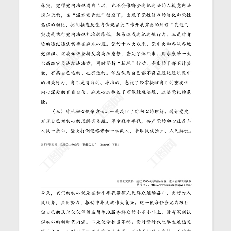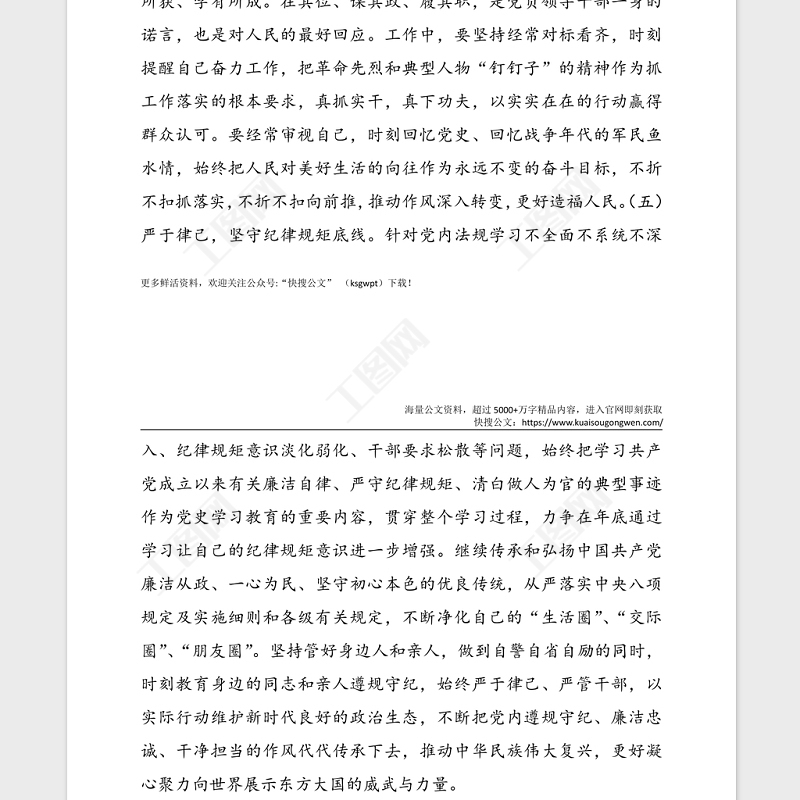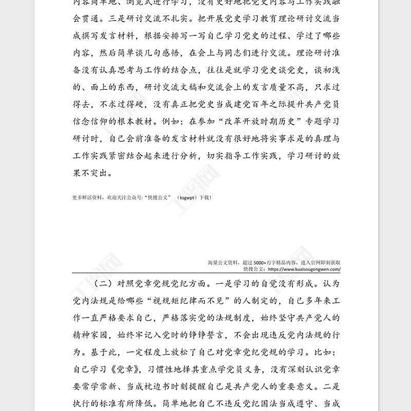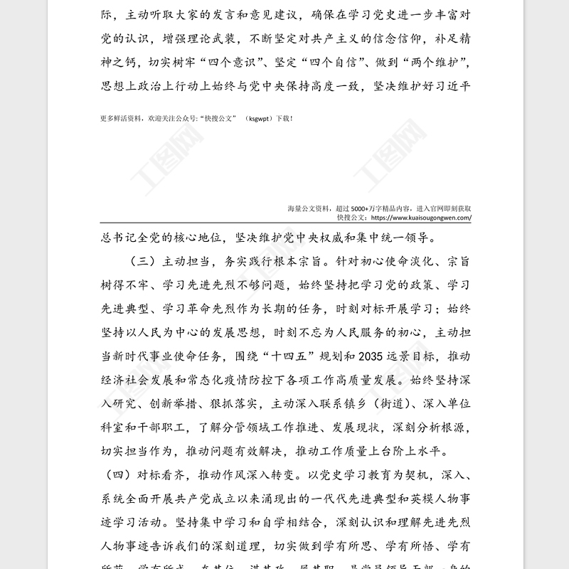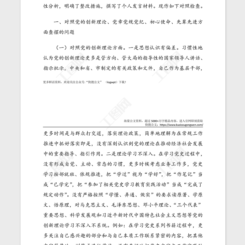 工圖網(wǎng)提供黨史學(xué)習(xí)教育專(zhuān)題民主生活會(huì)個(gè)人對(duì)照檢查材料范文供會(huì)員免費(fèi)下載。更多精彩黨課PPT素材,盡在工圖網(wǎng)。