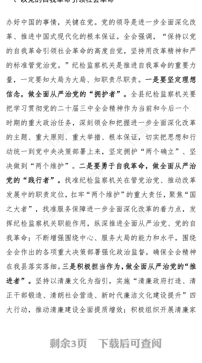紀(jì)檢監(jiān)察機(jī)關(guān)學(xué)習(xí)黨的二十屆三中全會精神研討發(fā)言材料下載