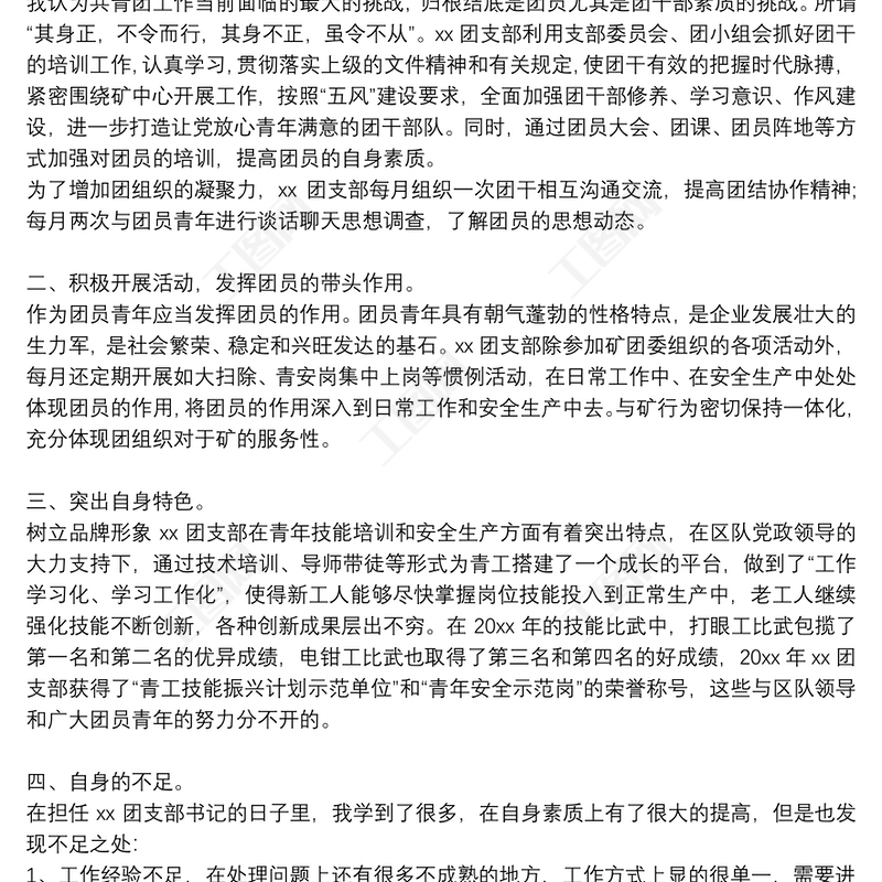 團支部書記述職報告